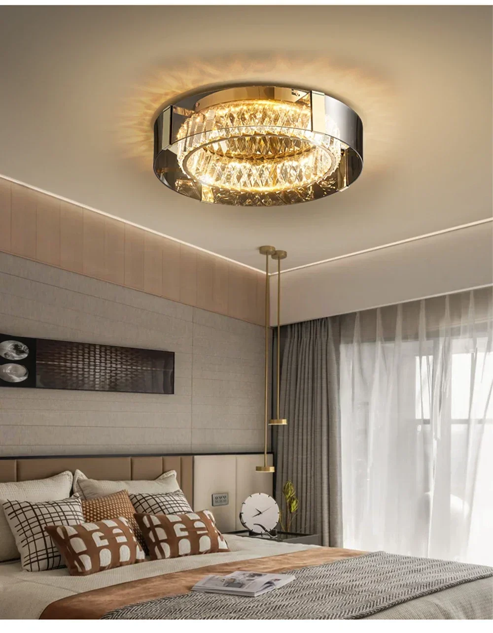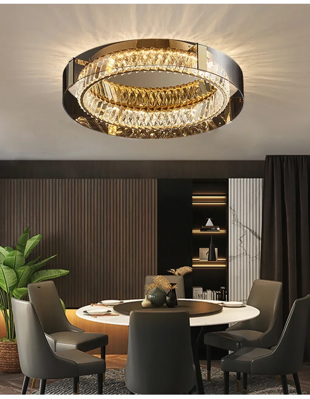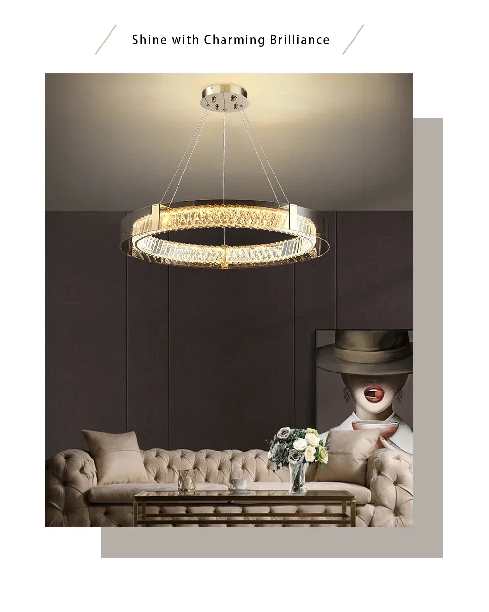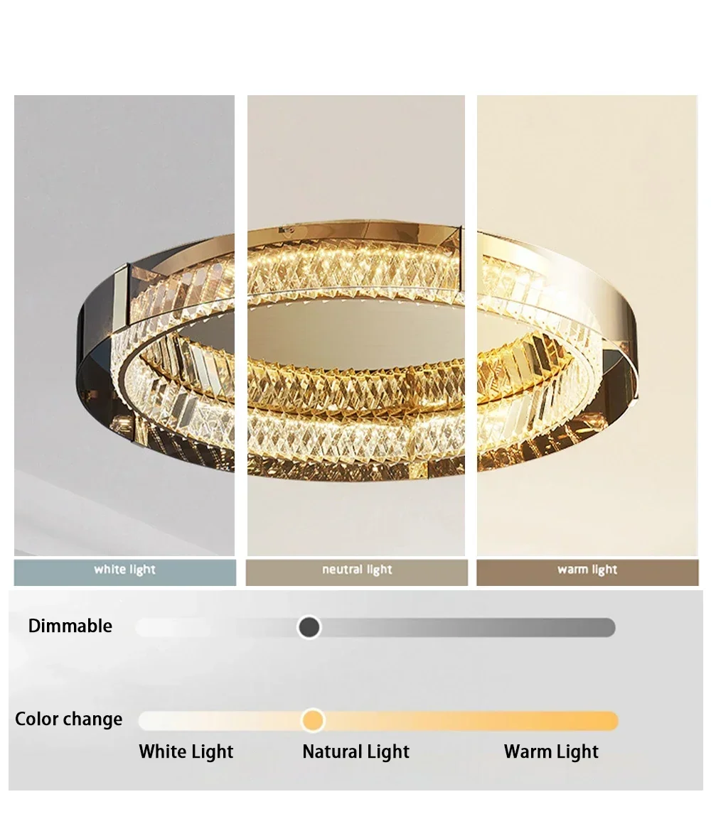 Stilvolle Beleuchtung für Ihr Zuhause: Verwandeln Sie jeden Raum in ein elegantes Ambiente mit der luxuriösen dimmbaren Kristall-Deckenleuchte. Diese moderne Deckenleuchte kombiniert stilvolles Design mit fortschrittlicher LED-Technologie für eine erstklassige Beleuchtung. Ihr zeitloses Kristalldesign verbreitet ein funkelndes Licht, das sich perfekt für Schlafzimmer, Wohnzimmer oder jeden anderen Raum eignet. Egal, ob Sie eine gemütliche Atmosphäre für einen Abend entspannen oder eine lebhafte Stimmung für eine Feier schaffen möchten, diese Deckenlampe passt sich Ihren Bedürfnissen an. Mit Ihrer einfachen Installation können Sie diesen atemberaubenden Blickfang in kürzester Zeit genießen und Ihr Zuhause in ein stilvolles Refugium verwandeln.